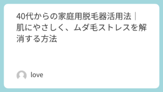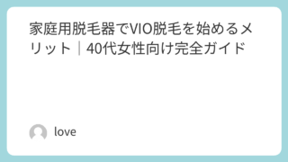 VIO脱毛 家庭用脱毛器でVIO脱毛を始めるメリット|40代女性向け完全ガイド 「VIO脱毛、恥ずかしいし痛い…でも気になる」あなたへVIO脱毛は、若い世代だけのものと思われがちですが、40代からでも... 2025.09.12 VIO脱毛メリット・デメリット介護脱毛