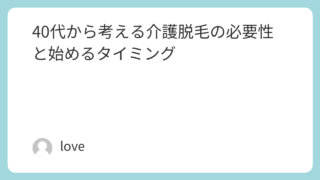 VIO脱毛 40代から考える介護脱毛の必要性と始めるタイミング 「介護脱毛って、まだ早いかも…」と思うあなたへ介護脱毛とは、将来の介護の際に清潔や快適さを保つために、デリケートゾーン(... 2025.09.12 VIO脱毛介護脱毛
