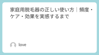 正しいケア 家庭用脱毛器の正しい使い方|頻度・ケア・効果を実感するまで 「家庭用脱毛器を買ったけれど、正しい使い方が分からない…」「どれくらいの頻度で照射すれば効果が出るの?」せっかく購入した... 2025.09.27 正しいケア