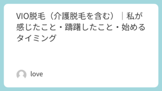 介護脱毛 VIO脱毛(介護脱毛を含む)|私が感じたこと・躊躇したこと・始めるタイミング 「VIO脱毛に興味はあるけれど、ちょっと恥ずかしい…」「将来のことを考えて、介護脱毛を始める人が増えているって本当?」私... 2025.09.27 介護脱毛体験談正しいケア
