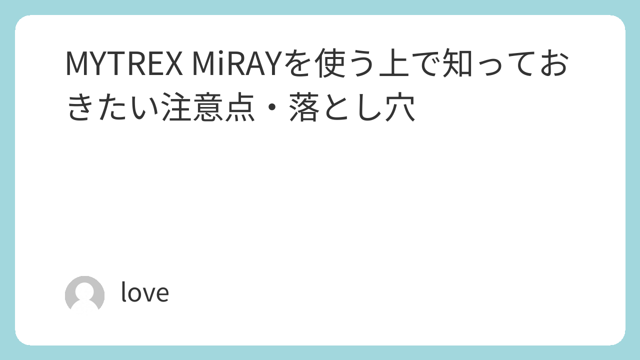 そんな声をよく聞きます。私自身も、実際に MYTREX MiRAYを使ってみて「こうすれば良かった」と思う失敗 がいくつかありました。