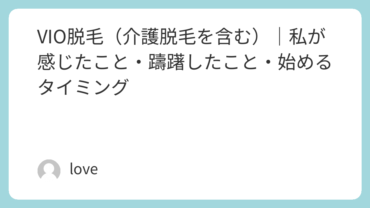 VIO脱毛(介護脱毛を含む)|私が感じたこと・躊躇したこと・始めるタイミング